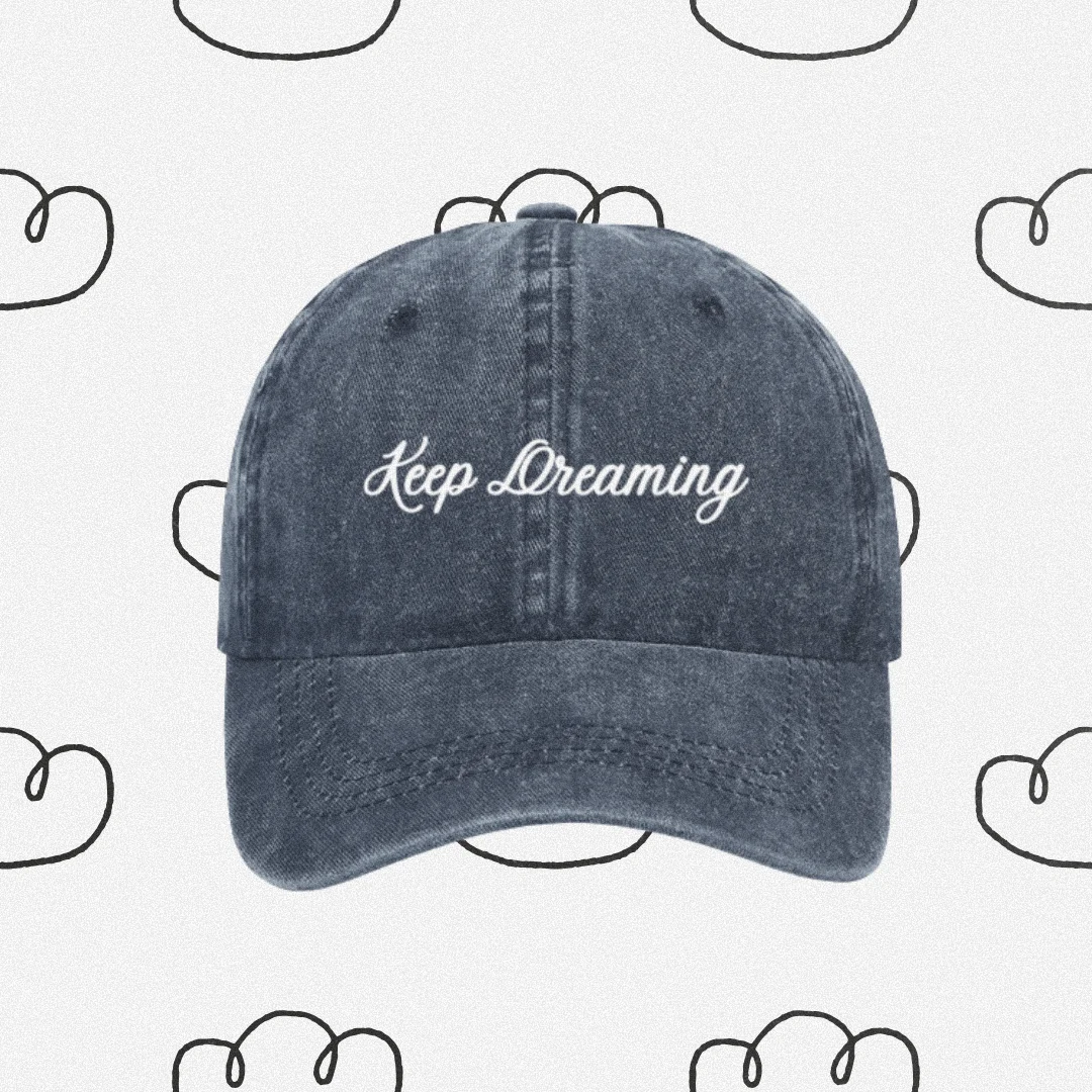 Denim Cap “Keep Dreaming” — A gentle reminder to hold on to wonder.